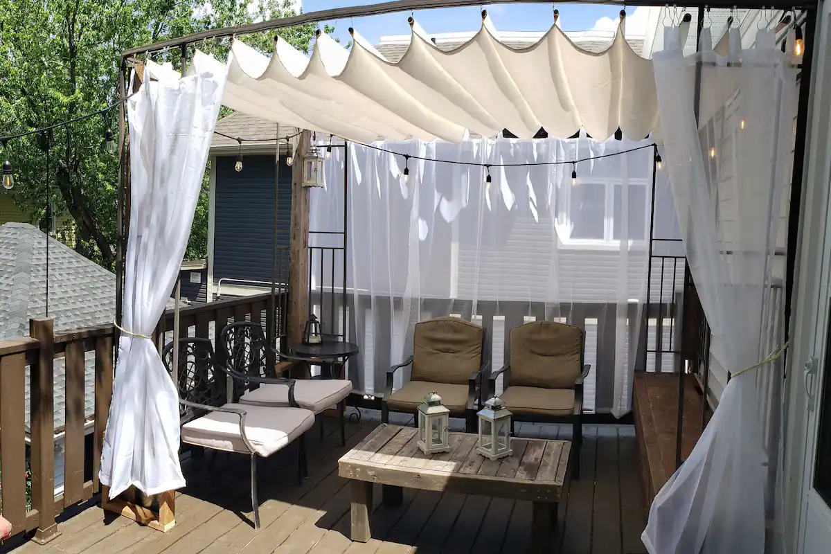 You are welcome to use any parts of the house, including the back patio and the front porch. The kitchen is available for you to use, and we have several kinds of teas and coffees for you to choose from.