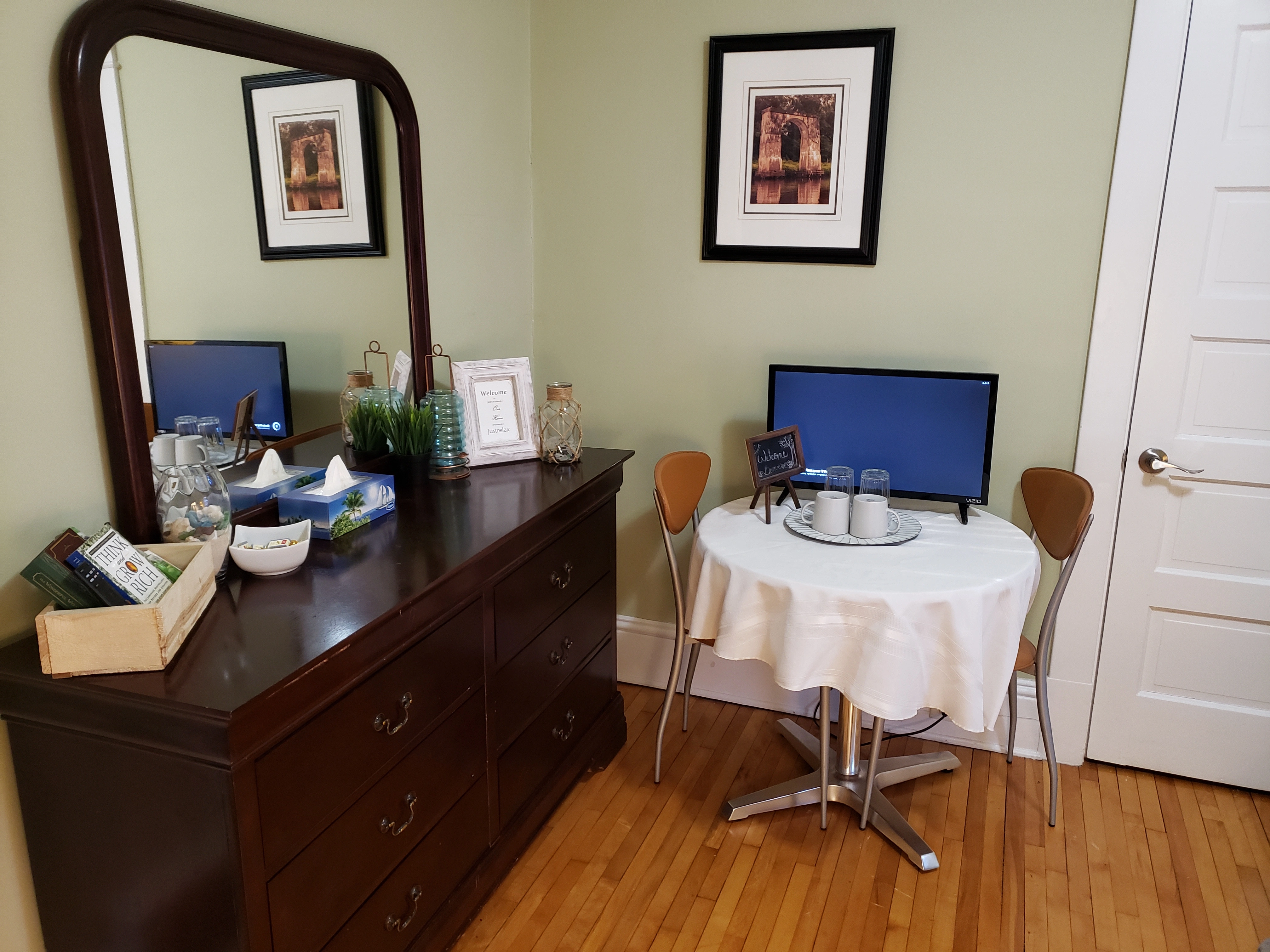 The classic is our favorite guest room because it is comforting and cozy. The colors are soothing and the decor is intimate.